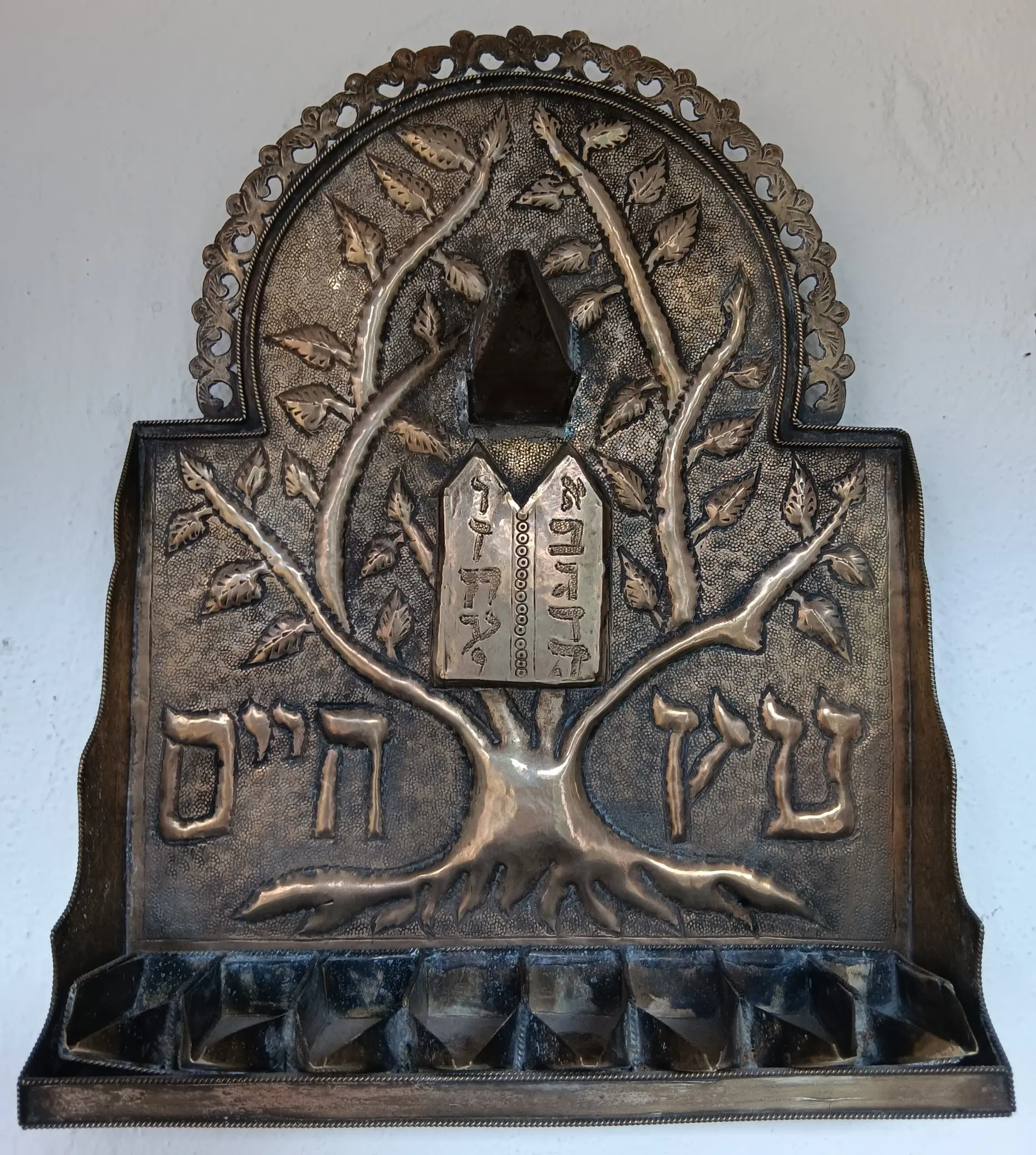 Die Tora wird mit einem „Lebensbaum“ verglichen, auf den die zwei hebräischen Wörter „Ez Chajim“ und die Verzierung auf der Rückwand des Chanukkaleuchters hinweisen. In der Mitte unter dem Dienerlicht sind die beiden Gesetzestafeln mit zehn hebräischen Buchstaben in ihrem Zahlenwert zu sehen. Bereits vor 15 Jahren griffen Jugendliche des jüdischen Religionsunterrichtes diese Idee auf und gestalteten eine Seite des Emmendinger Geschichtsdreidels mit dem Baummotiv einer leuchtenden Torarolle.