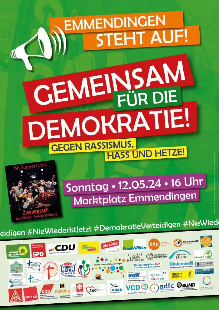 Emmendingen steht auf für Frieden, Menschenwürde, Demokratie – 12. Mai 2024 16 Uhr