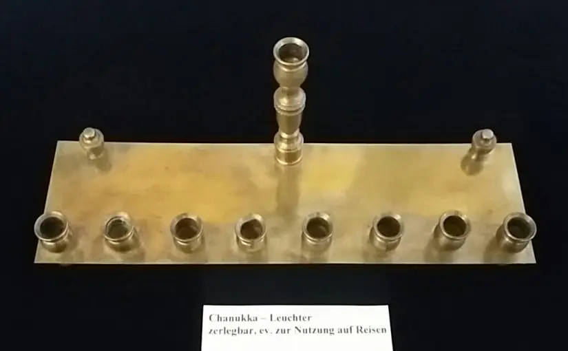 Ein Hinweis auf ölhaltige Speisen, Schokoladen-Chanukka-Geld und beliebte Kreisel (Dreidel) zum Spielen findet sich auch in der Ausstellung, die bis Ende Februar 2020 zu sehen ist.